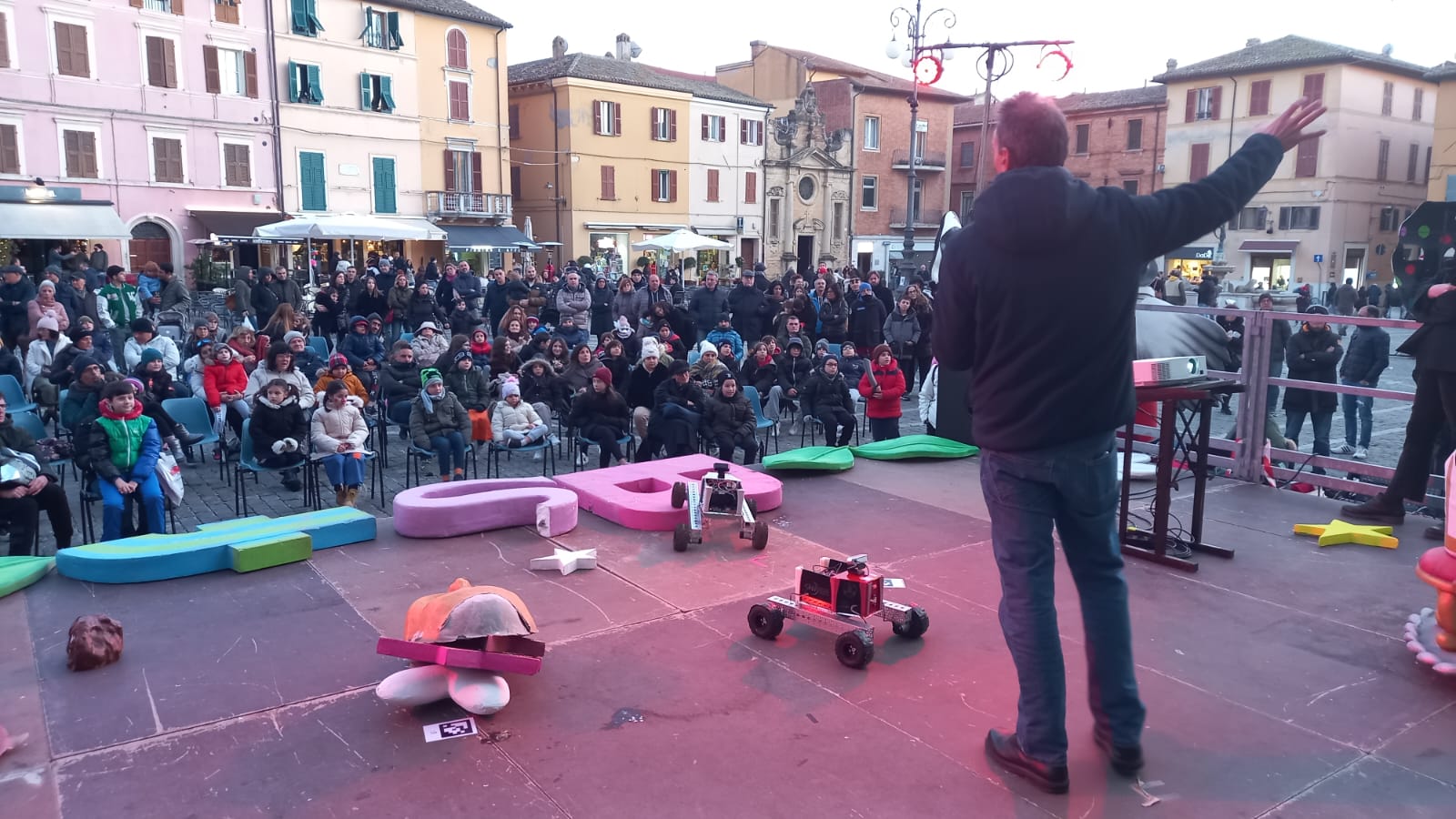 Ed anche il più dolce. Tornato infatti in presenza dopo l’epidemia di Covid, i carri allegorici sono tornati a distribuire dolci – e cioccolatini in particolare – agli spettatori che li hanno visti sfilare.Un’edizione dal titolo “Spazio all’Arte” che ha visto il coinvolgimento dell’Agenzia Spaziale Italiana, non solo quale ente patrocinante della manifestazione, ma quale organizzatrice di due tra i principali eventi collaterali delle sfilate dei carri allegorici, che si sono tenuti durante tre weekend consecutivi.E se i carri allegorici hanno testimoniato la presenza dello spazio dedicando uno di questi all’astronauta Esa Samantha Cristoforetti, la Fondazione Carifano ha ospitato un reale incontro tra Spazio e Arte, quello tra il Maestro Michelangelo Pistoletto e l’astronauta Paolo Nespoli, di nuovo insieme per proseguire ed evolvere un percorso iniziato con la missione VITA dell’ASI nel 2017, che vide protagonista l’astronauta dell’Esa Paolo Nespoli e il Terzo Paradiso, opera di Michelangelo Pistoletto che divenne il logo della missione.Moderati dalla presidente del Carnevale di Fano, Maria Flora Giammarioli, l’Artista e l’Astronauta hanno dato vita ad un appassionato dialogo che ha entusiasmato una sala gremita. Un incontro organizzato da ASI con la collaborazione di ESA e RAM (Radio Arte Mobile).Successo di pubblico anche per Rendez-vous su Marte, la dimostrazione al pubblico, grandi e soprattutto più piccoli, di come spazio e robotica, due discipline affascinanti, danno vita a ROSITA (ROver Spaziale ITAliano), progetto nato grazie alla collaborazione tra ASI e DIAG (Dipartimento di Ingegneria Informatica Automatica e Gestionale Antonio Ruberti) della Sapienza Università di Roma.