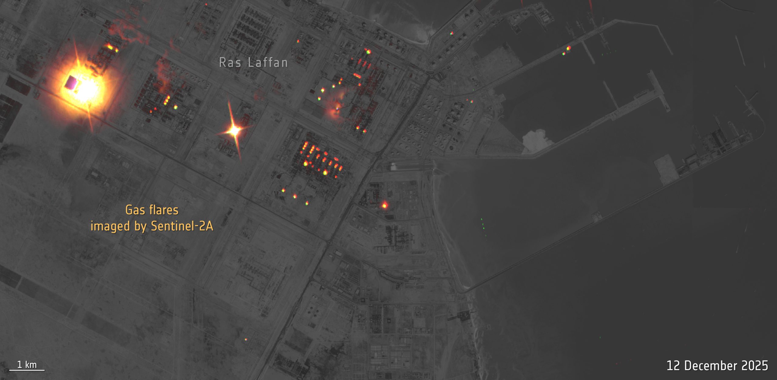 Immagine in evidenza: combustione di gas in Qatar osservato da Sentinel-2A – Crediti: Esa