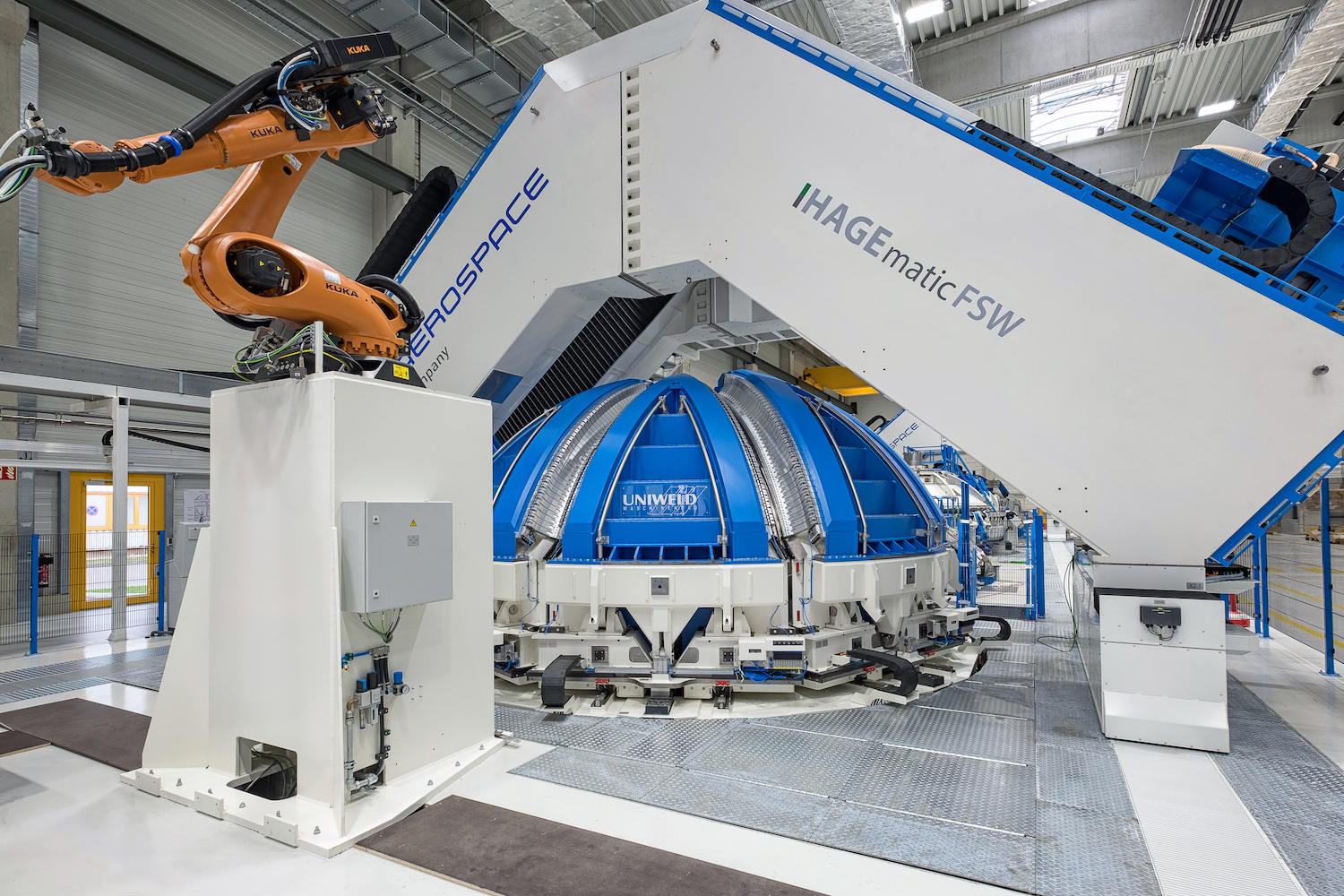 Immagine in evidenza: robotizzazione gestita dall’intelligenza artificiale per lo sviluppo di componenti di razzi. Crediti: Mt Aerospace