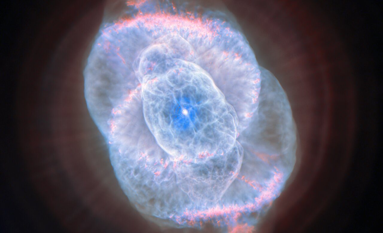 Nonostante sia stata classificata come ‘nebulosa planetaria’, l’Occhio di Gatto non ha nulla a che vedere con i pianeti. Dopo la scoperta di William Herschel, nel 1786, venne osservata dall’astronomo William Huggins. Ma nei telescopi dell’epoca appariva come un piccolo disco tondeggiante e sfumato, dall’aspetto simile a quello di un pianeta del Sistema Solare, una somiglianza che indusse gli astronomi a catalogarla come ‘planetaria’. Oggi sappiamo che le nebulose planetarie sono in realtà enormi gusci di gas ionizzato in espansione, espulsi da stelle simili al nostro Sole durante le fasi finali della loro evoluzione. Ma la definizione originale, sebbene imprecisa, è rimasta valida nella terminologia astronomica fino a oggi.