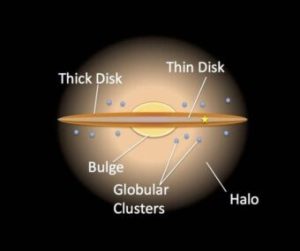 Immagine che mostra il disco spesso (thick disk) e il disco sottile (thin disk) della nostra Via Lattea Crediti: Nasa/JPL Caltech/R.Hurt/SSC